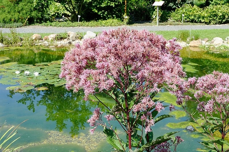 Высокий привлекательный многолетник из Северной Америки. Это архитектурное растение, которое красиво смотрится у пруда, позади многолетней клумбы или среди травы. Цветки образуют плотные розовые или белые зонтики и имеют приятный аромат. Растение цветет с августа до конца сентября и вырастает до 2 м в высоту. Стебли жесткие, полые внутри, окрашены в красный цвет, листья — темно-зеленые, зубчатые, шероховатые. Растение, которое посещают бабочки.