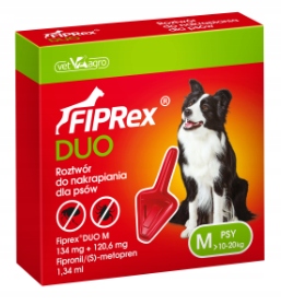 Fiprex DUO — линия лекарственных средств, предназначенных для борьбы с блохами и клещами у собак, кошек и хорьков. Фипрекс ДУО содержит два активных вещества: фипронил и (S)-метопрен. Препарат действует путем уничтожения блох, клещей и вшей, блокируя нервную проводимость паразита, а следовательно, его паралич и гибель. Фипронил убивает блох в течение 24 часов, а клещей и вшей — в течение 48 часов после применения. Входящий в состав Фипрекс ДУО, (S)-Метопрен - регулятор роста насекомых, подавляет развитие неполовозрелых форм блох (яиц, личинок и куколок), встречающихся в среде животных, мин. в загонах и кроватях.