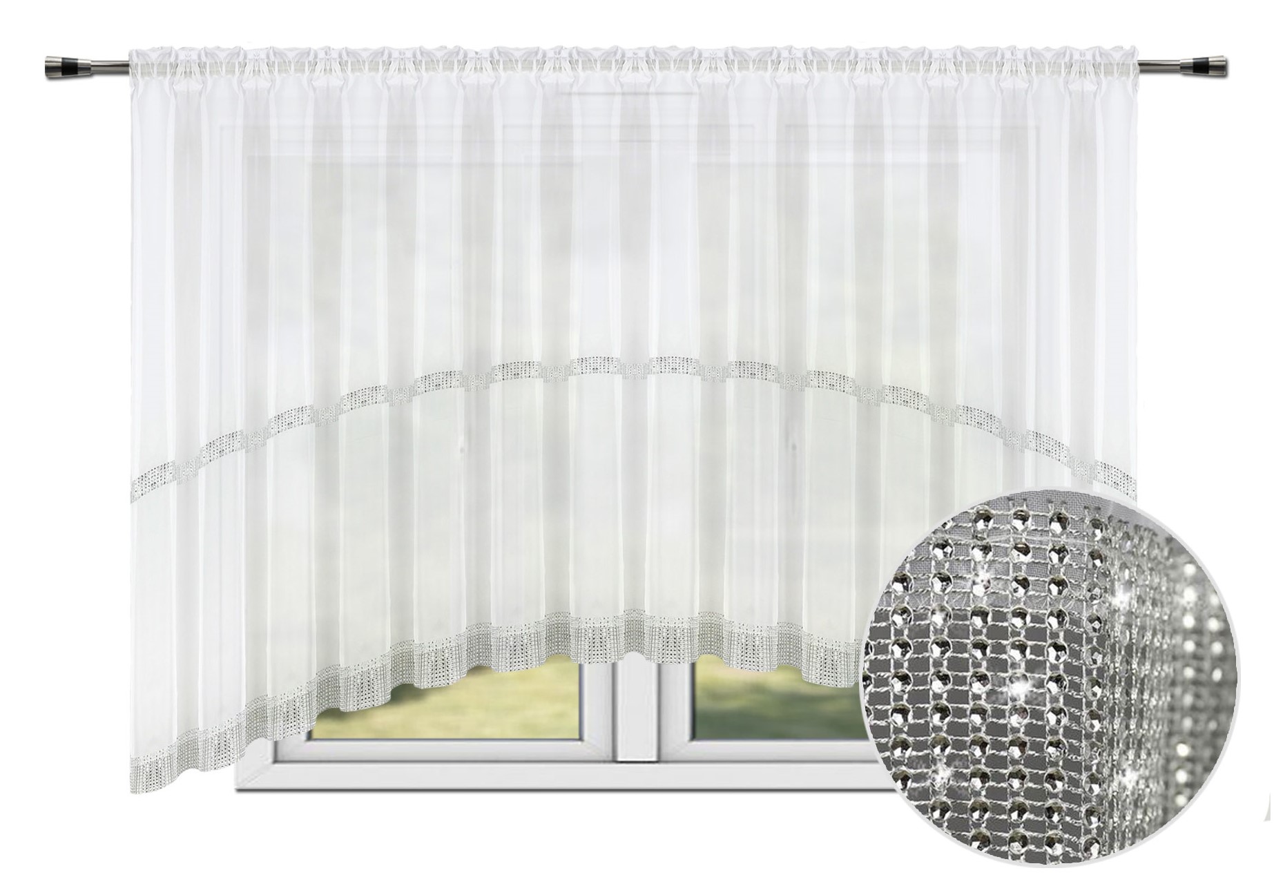 Firana klasyczna woal 400 cm x 160 łuk cyrkonie śliczna krótka