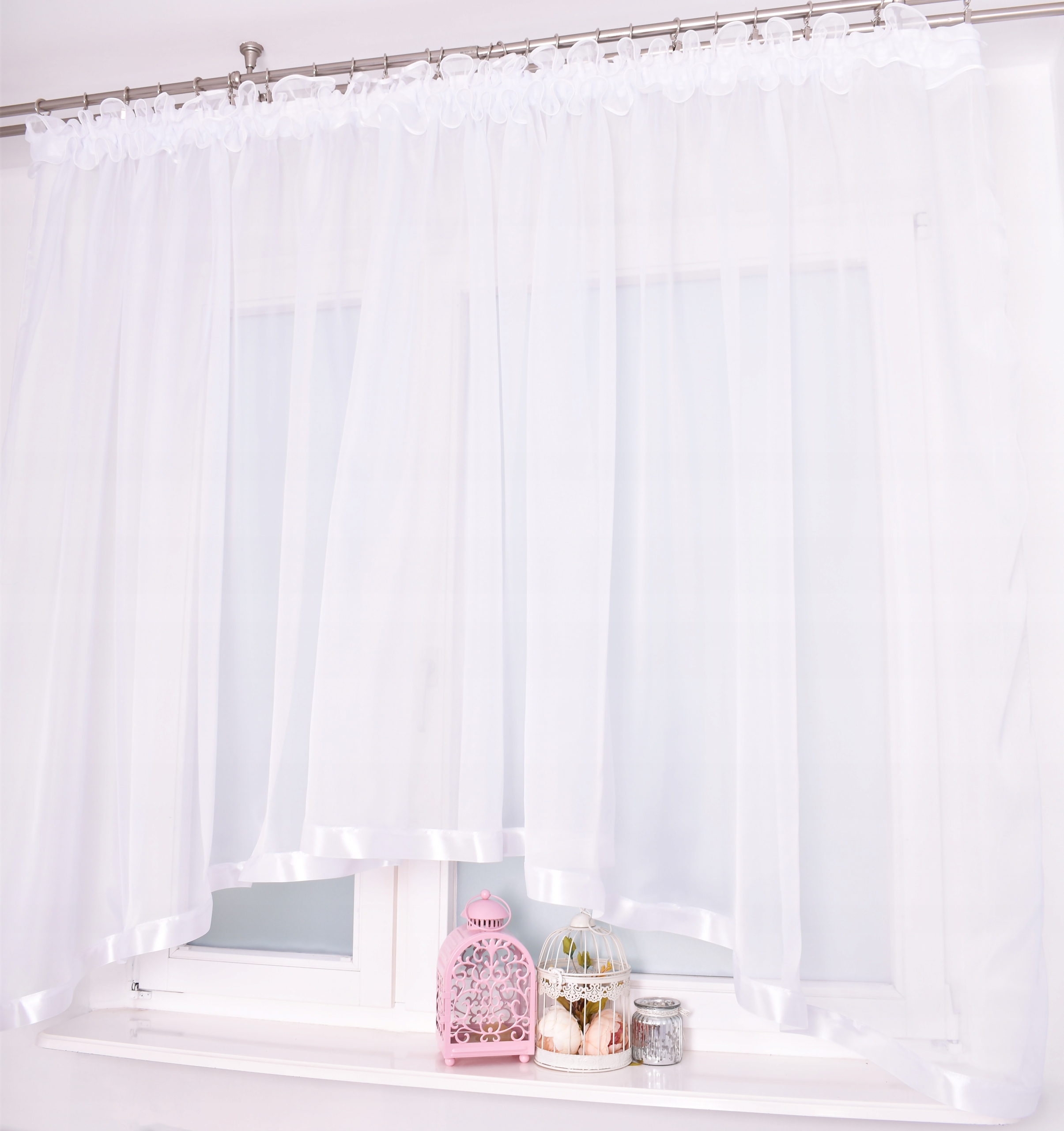 Занавеска с подолом 150X400 белая вуаль бант занавеска