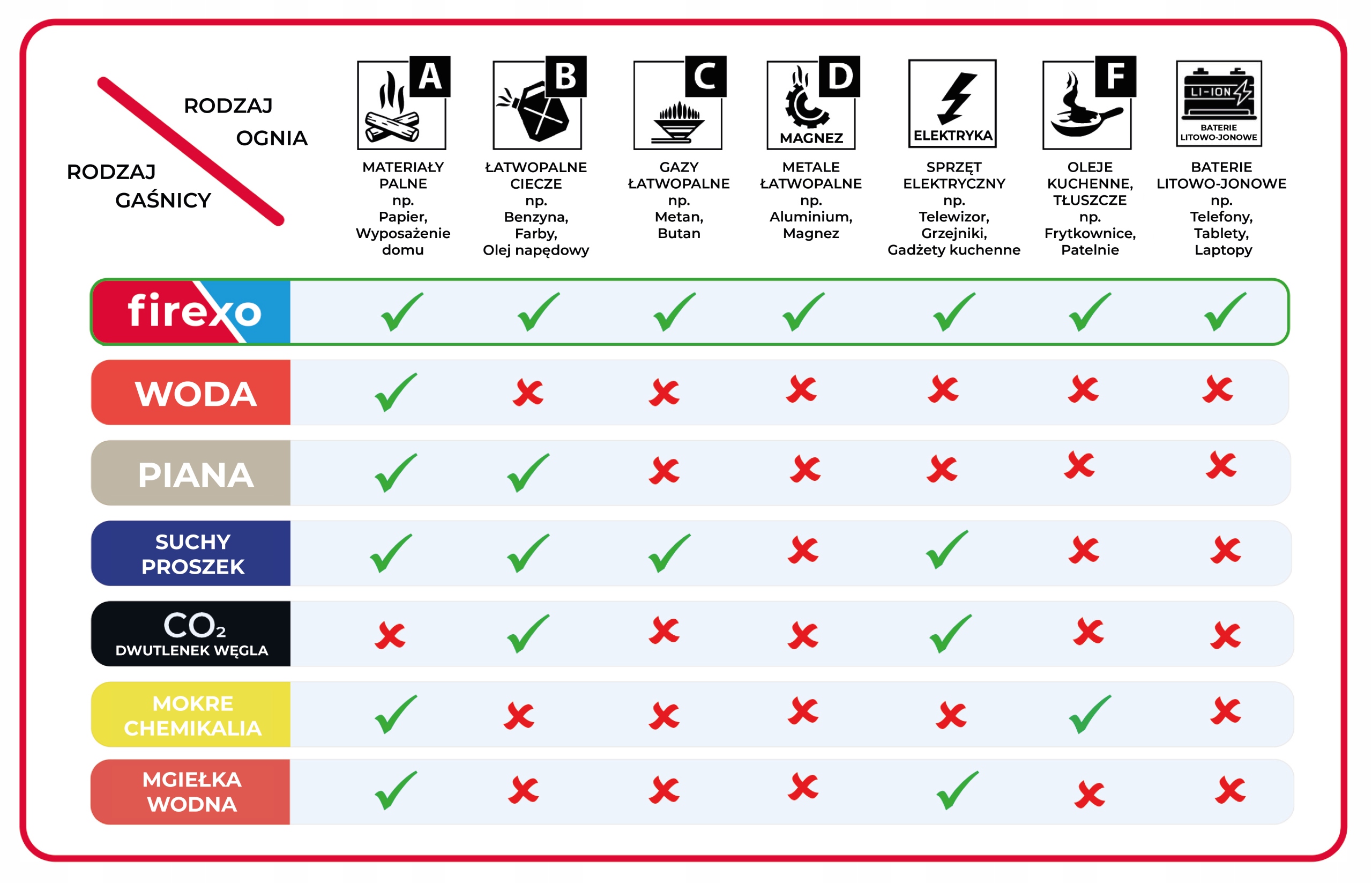 Зачем выбирать мини -огнетушитель Mini Firexo Mini? D, Электрические пожары, пищевые масла (класс F) и пожары, вызванные литий-ионными батареями (смартфоны, электрические скутеры, игрушки),
