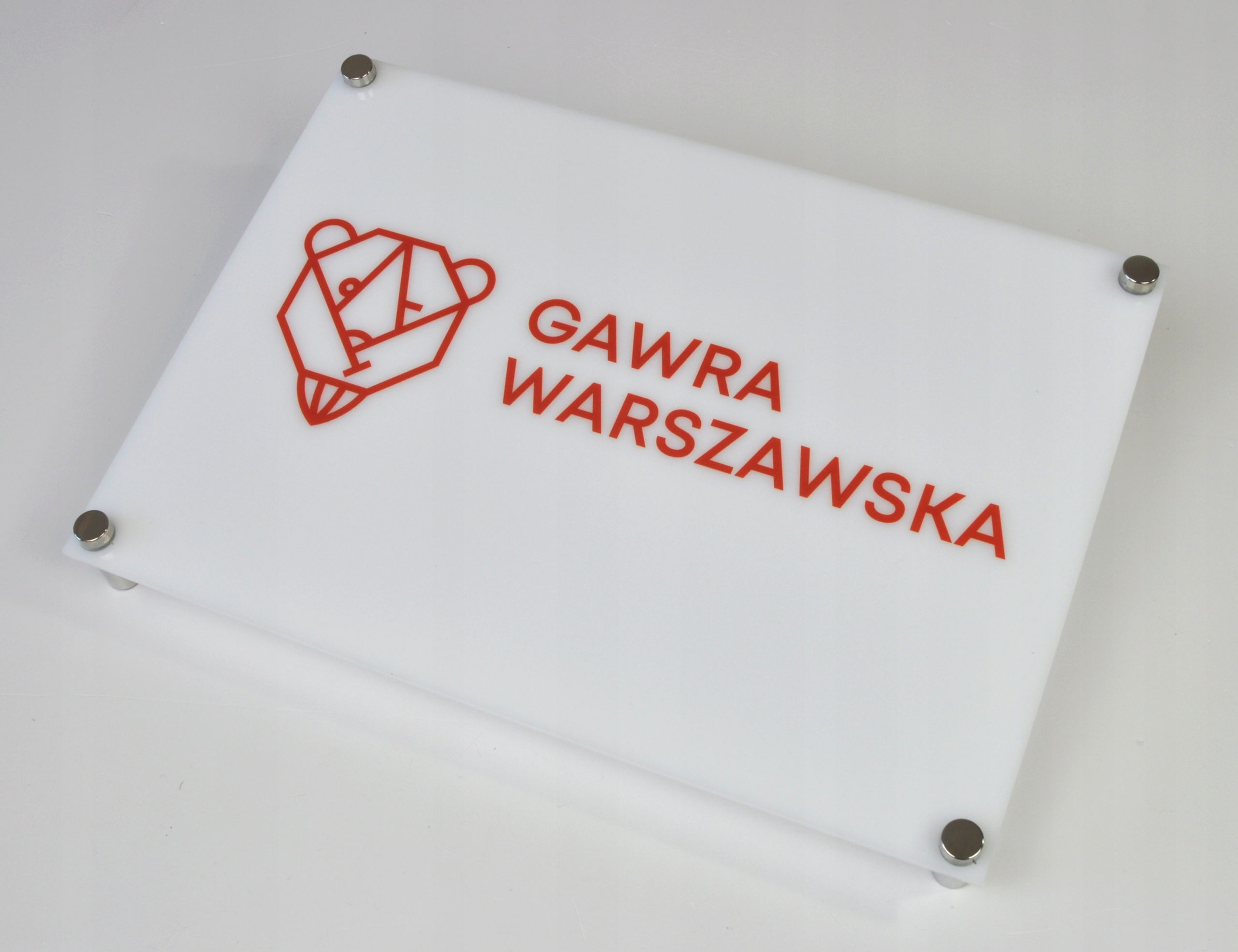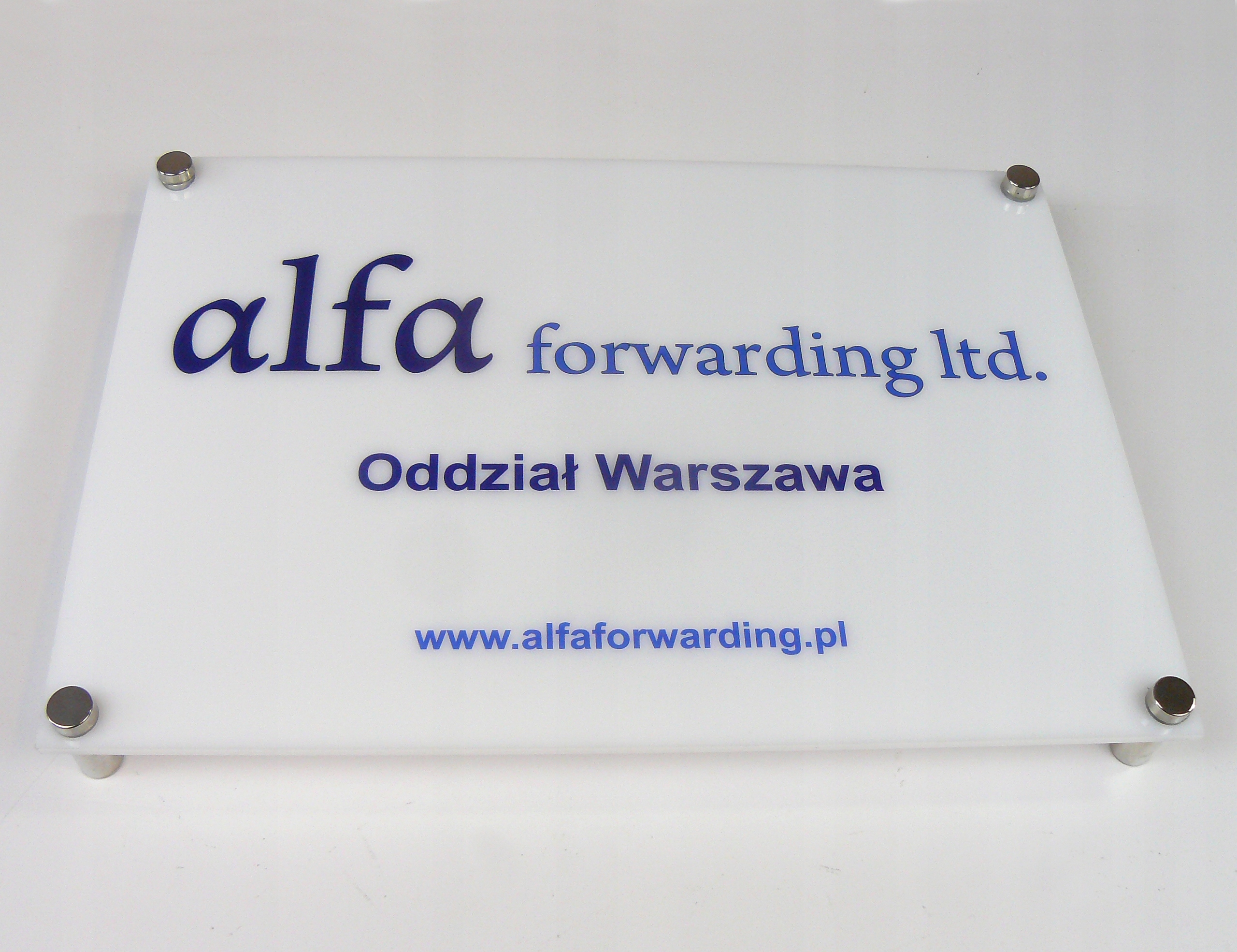 Вывеска компании выполнена инновационным методом УФ-печати на высококачественном молочном плексигласе толщина 4 мм. Пластина имеет отверстия и оснащена четырьмя проставками для облегчения ее крепления. Все это создает очень элегантную композицию.