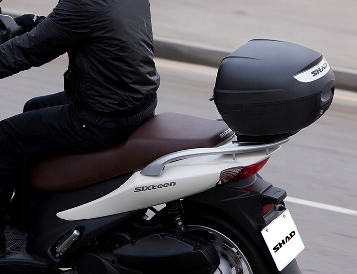 Модель SH26 имеет объем 26 литров, что позволяет перевозить закрытый шлем или достаточно большое количество другого багажа максимальным весом 3 кг. В сочетании с водонепроницаемой конструкцией это идеальное решение для людей, которые много путешествуют или для тех, кто, например, не может (или не хочет) брать с собой шлем, куртку или другие вещи после парковки мотоцикла. р>