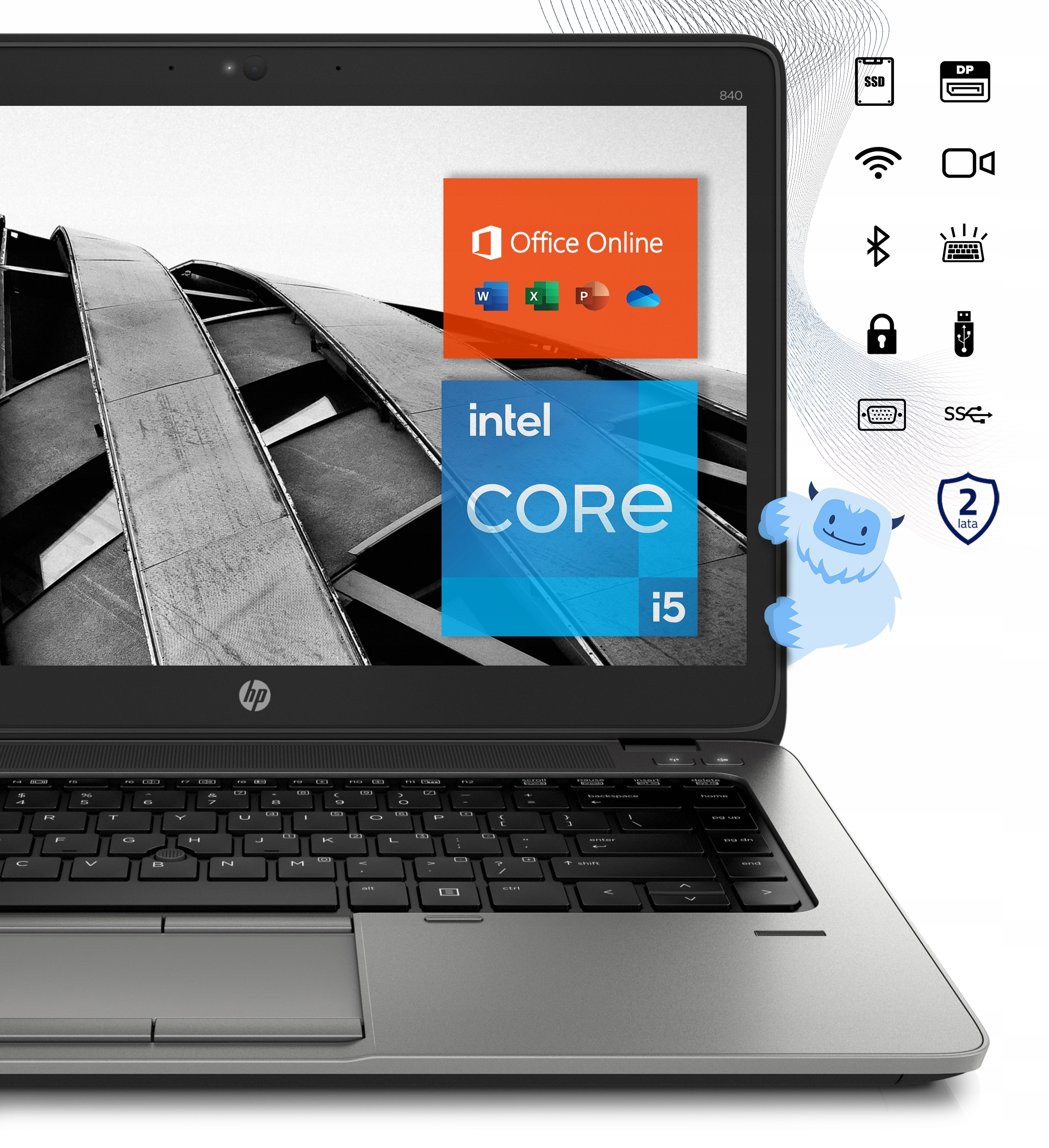 Легкий бизнес-ноутбук EliteBook 840 первого поколения оснащен великолепным матовым 14-дюймовым экраном с соотношением сторон 16:9. -отражающий слой обеспечивает комфортное многочасовое использование не напрягая глаза.Богатая комплектация разъемами, заключенными в прочную, металлическую конструкцию - идеальное сочетание преимуществ предшественников и современность.