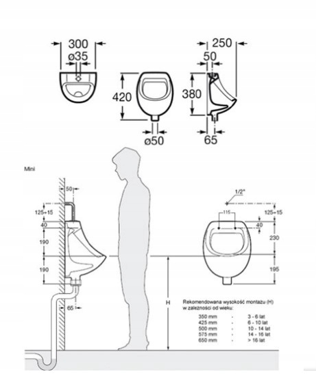 Фирменный писсуар Roca в комплекте с клапаном и сифоном