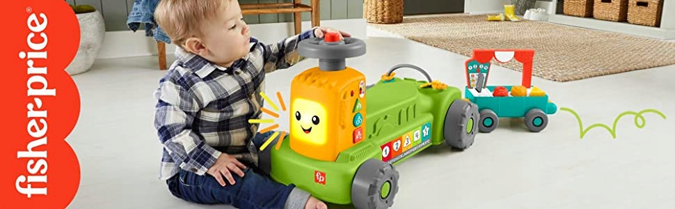 FISHER PRICE JEŹDZIK EDUKACYJNY TRAKTOR Z PRZYCZEPĄ 4w1 UCZ SIĘ HLM42