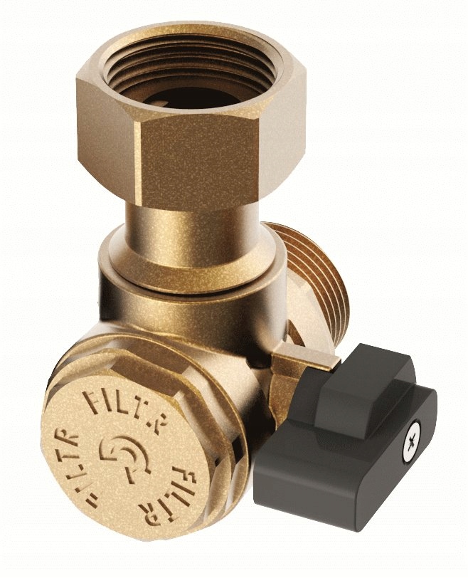 Кран шаровой угловой 1/2" ERYK Calido для настенных котлов центрального отопления и водогрейных котлов с обратным клапаном и противонакипным фильтром