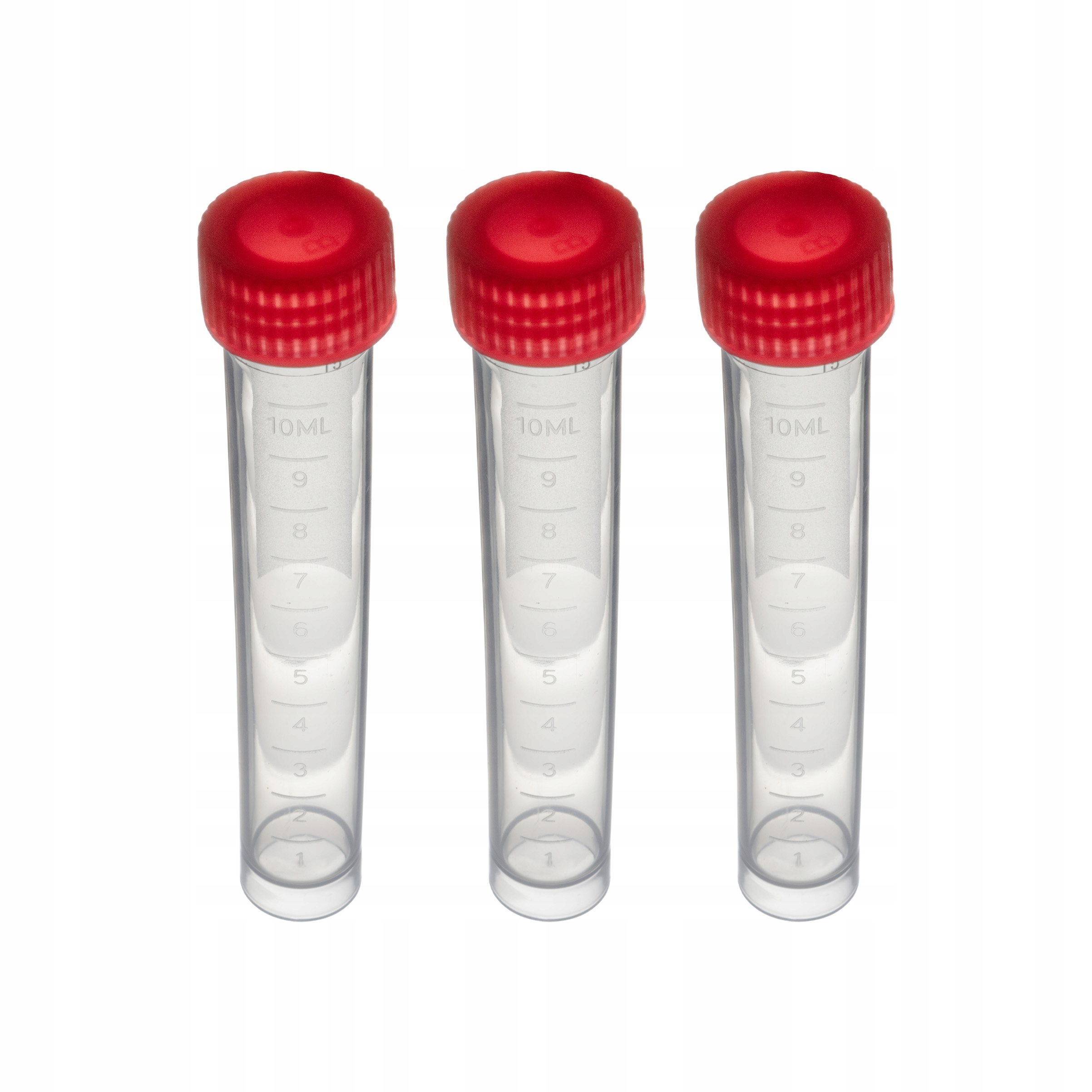 Флакон для криотеста 10 мл, для низких температур, для охлаждения и замораживания проб максимум до -45°C. Конический с ободком внизу - возможность размещение пробирки вертикально без штатива. Имеет красную крышку из ПП (полипропилена). Автоклавируемый.
