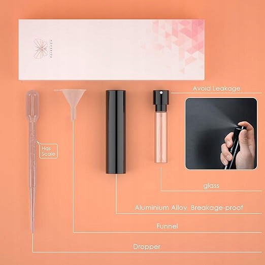 - Генерализация: В комплект входит 1 распылитель для духов и 1 наполнитель для воронки. Духи очень легко заправлять без затрат на наполнитель для воронки и без утечек.