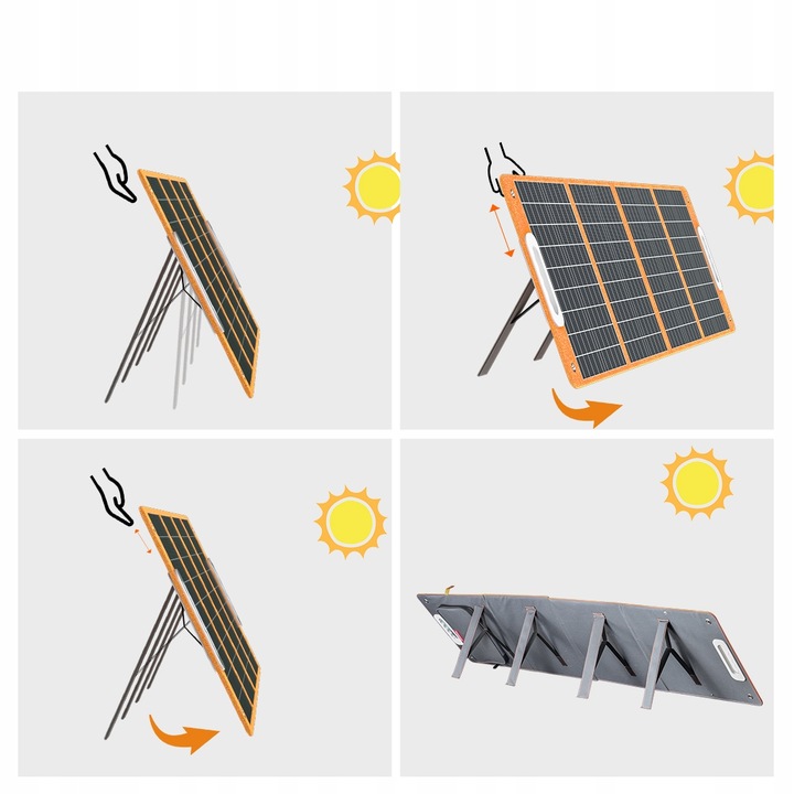 [Регулируемая солнечная панель. Это может помочь пользователям регулировать направление солнечной панели в зависимости от солнечного света, чтобы получить до 25% больше солнечного света, чем в случае плоского укладки.