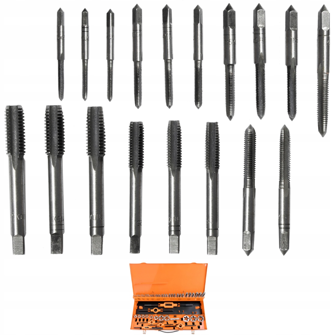 ➡️ Набор метчиков и плашек, состоящий из 54 элементов, включая метчики, плашки, ручки для метчиков, держатели плашек, метчик и отвертку. p >