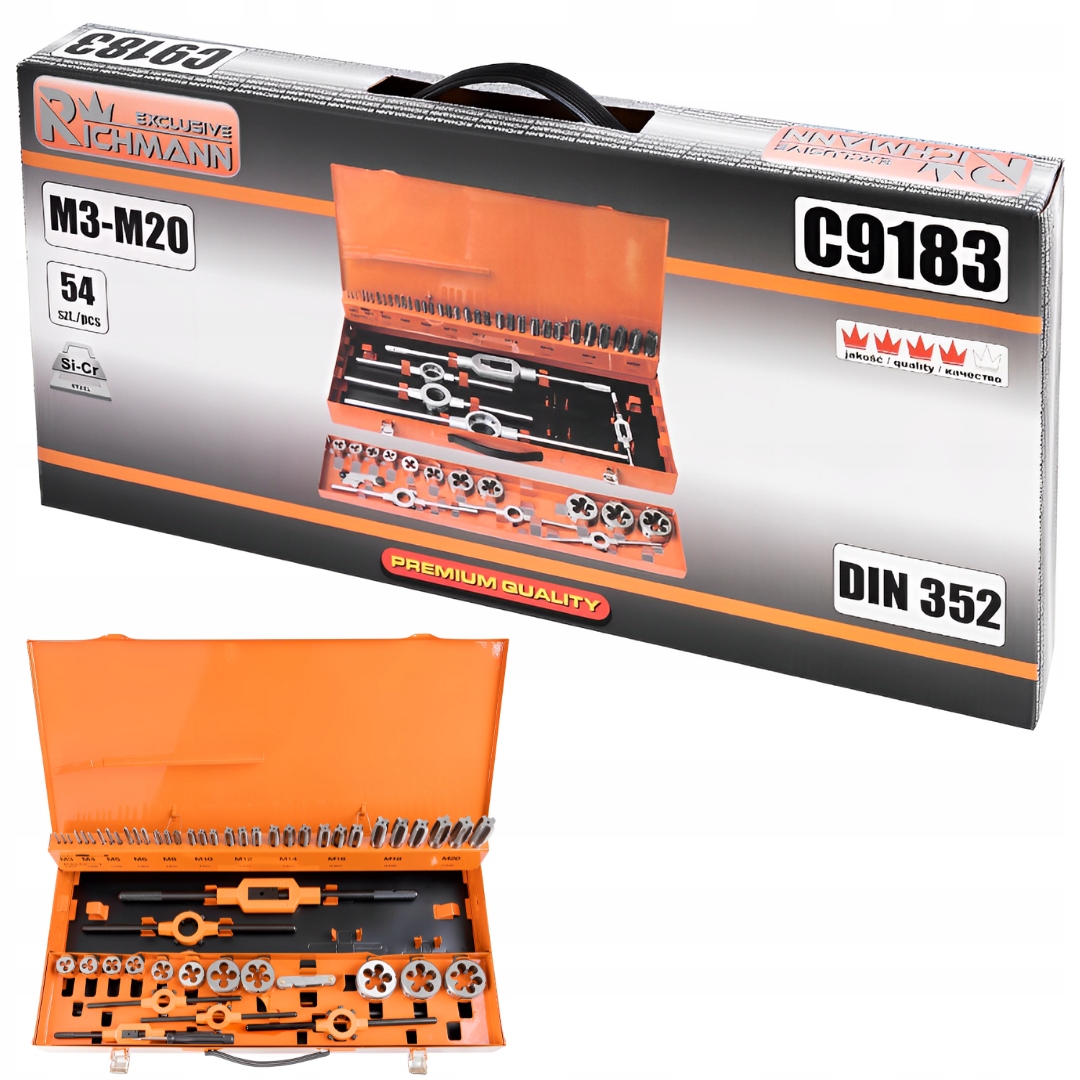 МЕТКИ И МАТРИЦЫ M3-M20 НАБОР ИЗ 54 ЭЛЕМЕНТОВ В КОРПУСЕ RICHMANN