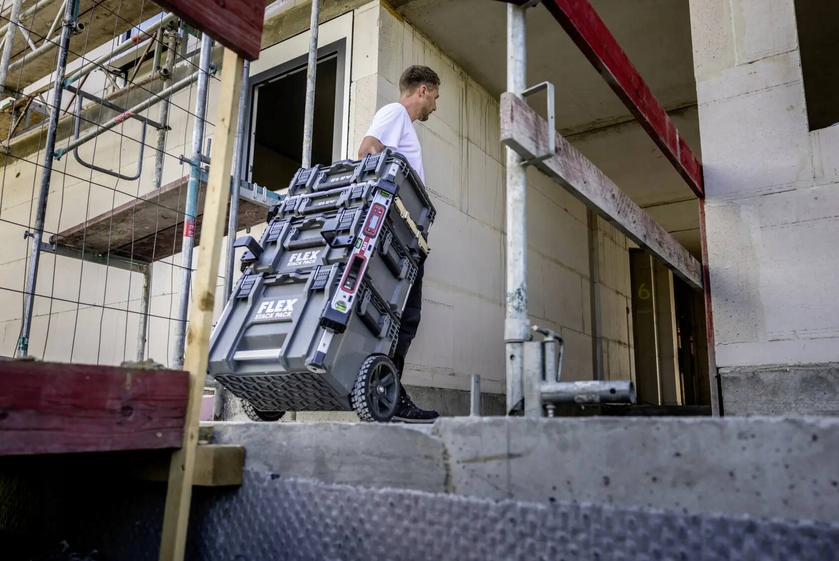 Благодаря прочной системе хранения и транспортировки STACK PACK инструменты и аксессуары можно легко транспортировать на строительную площадку.