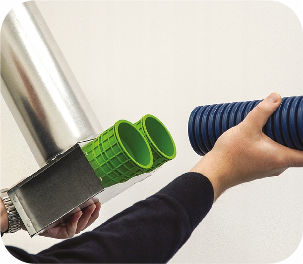Распределительная коробка FLEXO BOX PRO T позволяет подключать диффузоры или воздушные клапаны. Благодаря большой длине патрубка коробку можно легко подогнать под разную высоту потолка (перегородок) без необходимости использования дополнительных соединительных элементов. Коробка PRO оснащена самоуплотняющимся соединительным портом, что делает установку очень быстрой и простой.