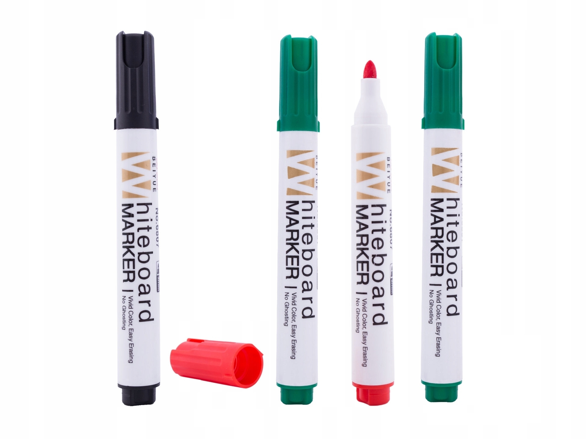 Маркеры для досок. Чернила легко удаляются с доски. Конец и колпачок в цвет чернил. Ширина линии письма 1,5 мм. Круглый акриловый наконечник с фиксатором.