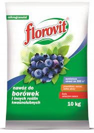 Многокомпонентное минеральное почвенное удобрение, предназначенное для подкормки голубики в первый год после посадки и в последующие годы выращивания. Важным преимуществом Флоровита для черники является способность подкислять почву, что явно благоприятствует росту и развитию растений, которым требуется положение с низким pH почвы. Для него также характерно отсутствие нитратов. Голубику сажают осенью в почву с pH 3,8 – 4,8. Растения, выращенные в почве со слишком высоким pH, характеризуются малым ростом и преждевременным пожелтением и опадением листьев. Удобрение предотвращает хлороз листьев в период вегетации растений. Более того, он использует формы питательных веществ, которые медленно перемещаются в почве, что защищает их от вымывания в грунтовые воды.