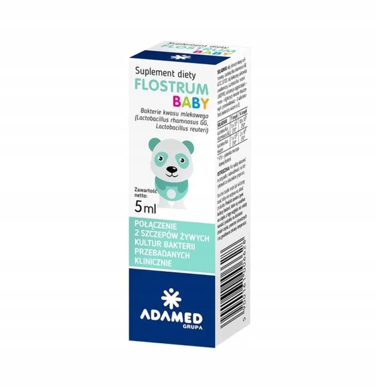 Flostrum Baby — биологически активная добавка, содержащая живые культуры бактерий Lactobacillus rhamnosus GG и Lactobacillus reuteri. Продукт предназначен для применения у детей с первых дней жизни, подростков и взрослых.