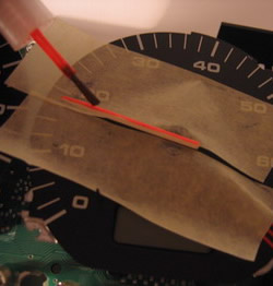 Краска лучше всего работает в прилавках, где циферблаты и указатели подсвечиваются сверху – в прилавках, где указатель светится светом изнутри прилавка, самый простой и эффективный способ изменить цвет и интенсивность его подсветки можно, вставив диод внутрь счетчика рядом с осью указателя - красить такие стрелки не рекомендуется.