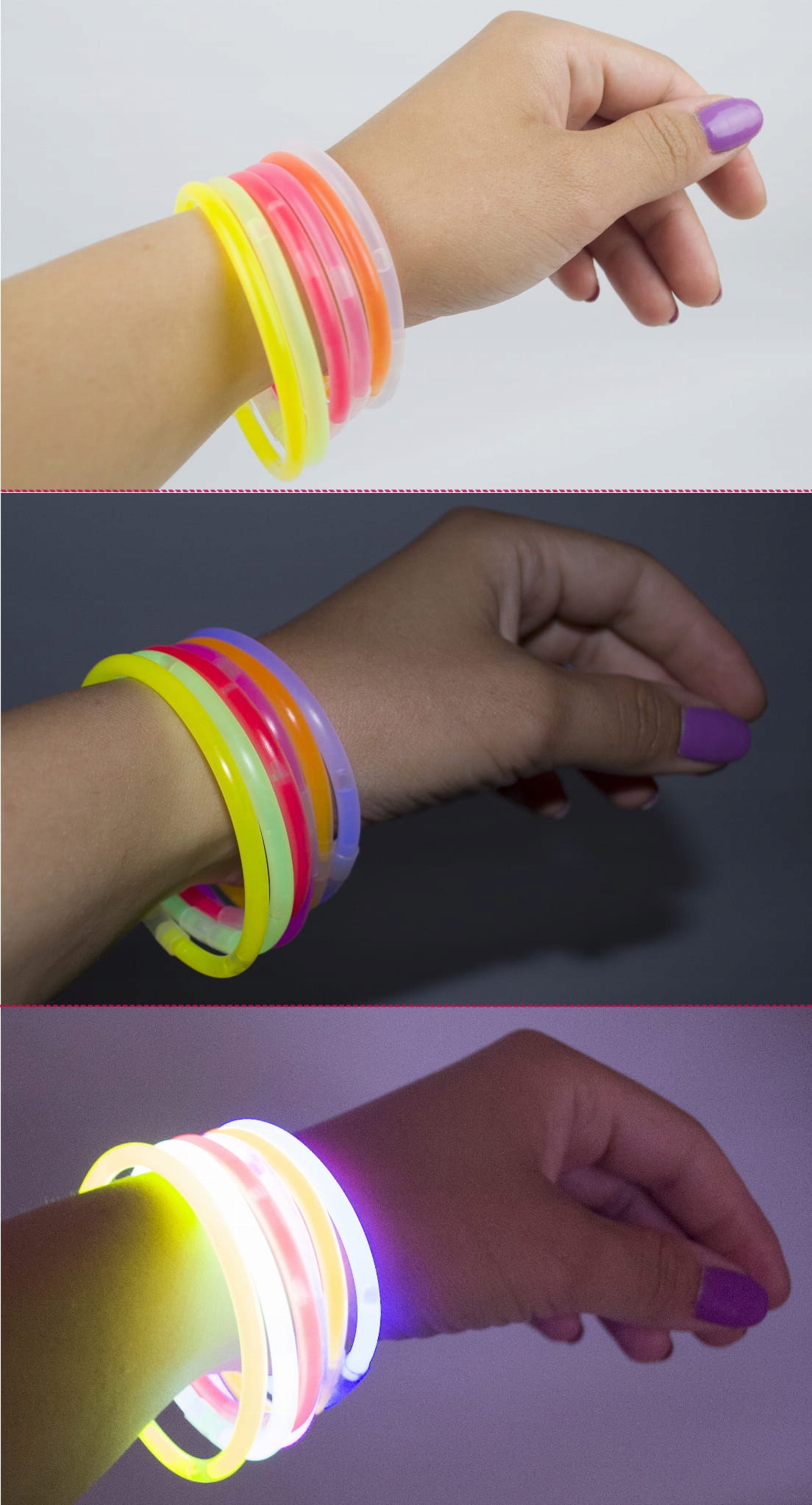 Флуоресцентные полосы браслетов светятся в темных 100 кусочках цветовой миксы