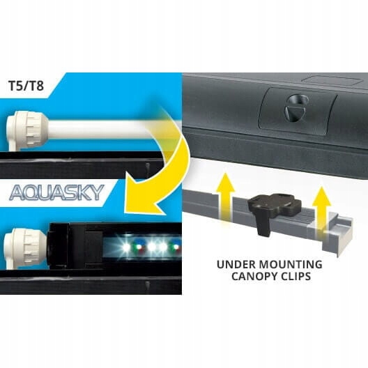 Fluval Aquaky Led 2,0 - это освещение, посвященное пресноводным и морским аквариумам. максимальная мощность освещения составляет 16W . Луч представляет собой комбинацию белых диодов с диодами RGB . Благодаря адаптации типа света к потребностям резервуара и предпочтениям владельца в очень широком диапазоне.