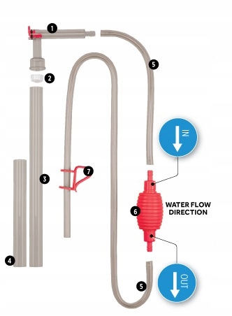 - Зажим ведра: предотвращает случайное разбрызгивание воды. Начало всасывания: нажмите на шарик всасывания
