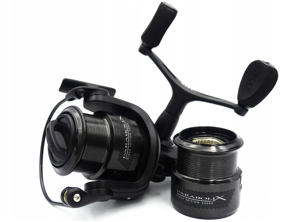 map parabolix Black Edition 3500x Как и в серии Black Edition, о каждой детали позаботились. Корпус, покрытый магнием, глубокой катушкой, двойной ручкой и точным тормозом и противовозяшением ролика. Чрезвычайно сильный и надежный механизм. Отличное качество! 90 м/0,25 мм, 70 м/0,30 мм