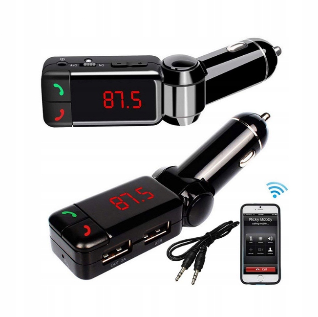 fm Car BC06 Это универсальное устройство - это автомобильное зарядное устройство со стандартным USB -разъемом, беспроводное соединение Bluetooth, MP3 -плеер, FM Player.