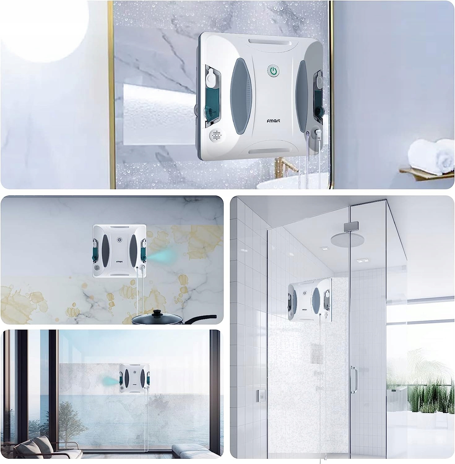 【Дистанционное управление через мобильное приложение】Автоматический очиститель окон обеспечивает удобное управление через приложение FMART и пульт дистанционного управления 2,4 ГГц. ① С помощью приложения FMART вы можете наслаждаться интеллектуальным управлением, переключаться между несколькими языками и даже настраивать голосовые подсказки. Функция голосового управления поддерживает 10 языков. ② Пульт дистанционного управления 2,4 ГГц позволяет вручную управлять распылением воды, режимами очистки и командами направления. Его мощная защита от помех обеспечивает надежную работу на максимальном эффективном расстоянии 10 метров.
