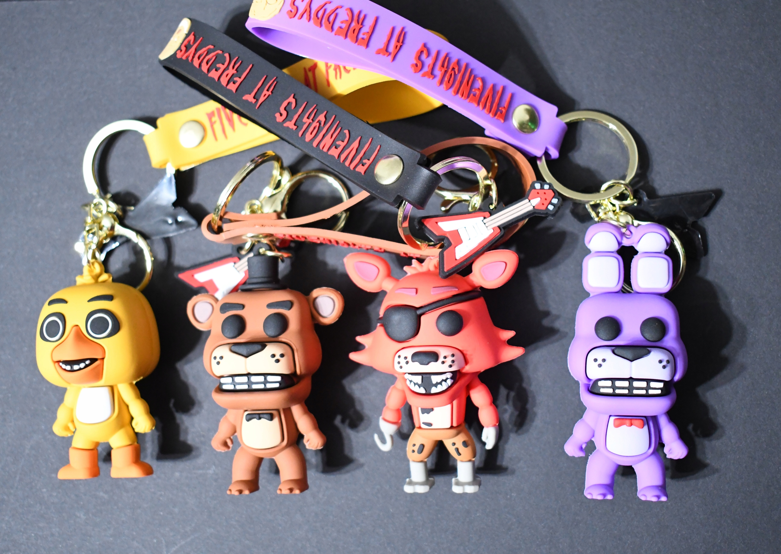 К кольцу прикреплена большая статуэтка с одним персонажем Five Nights at Freddy's + небольшой кулон-гитара.