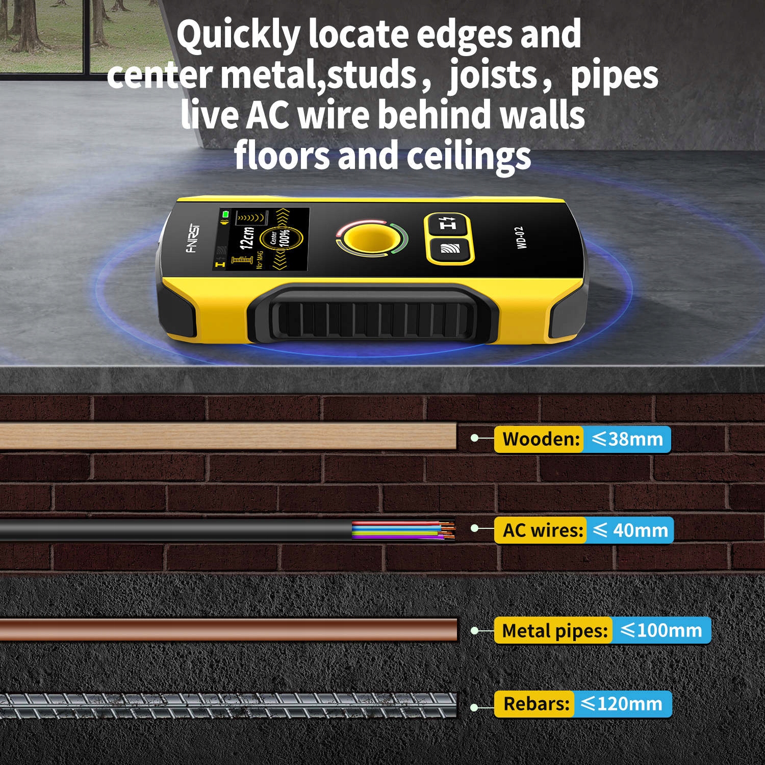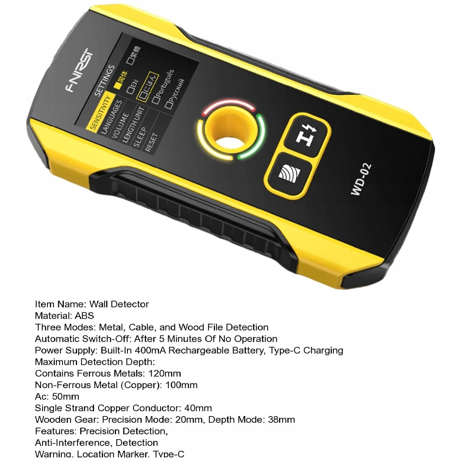 fnirsi WD-02 Сканер детектора стен -очень функциональный и универсальный инструмент, предназначенный для обнаружения скрытых объектов в стенах. В идеале подходит для использования во время ремонта дома, электрических установков и строительных проектов.