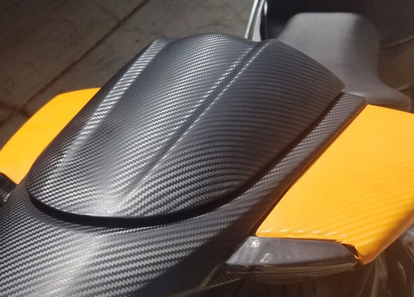 Очень популярный материал, используемый для визуального тюнинга автомобилей и не только. Фольгой также можно обклеить телефон, консоль, ноутбук, планшет, кабину автомобиля и т. д. Она имитирует карбон и имеет нежную структуру.