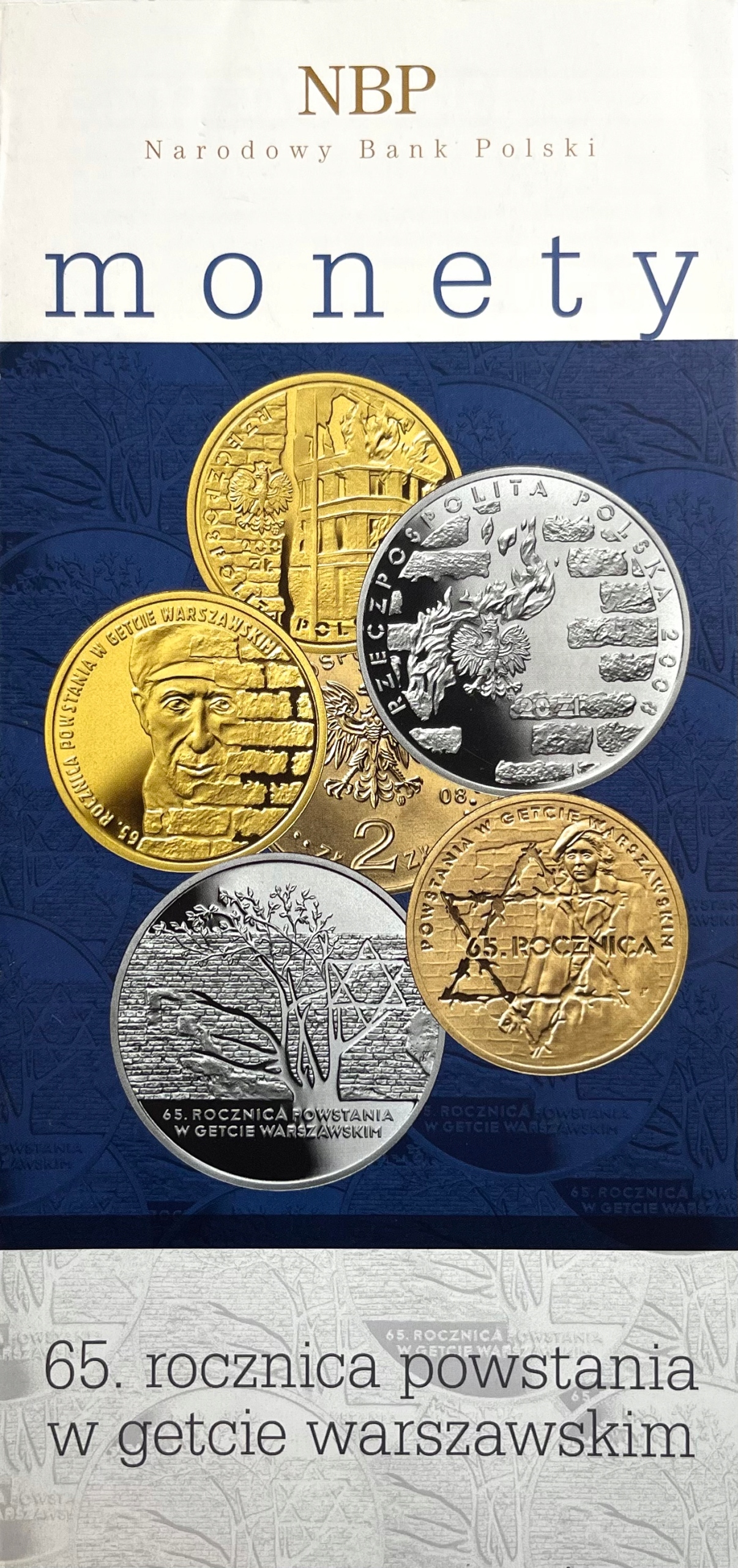 FOLDER EMISYJNY DO MONETY 65. ROCZNICA POWSTANIA W GETCIE WARSZAWSKIM