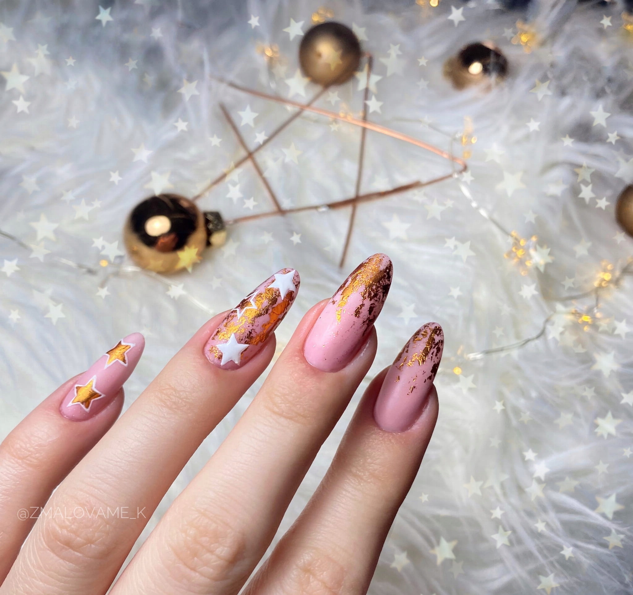 Фольгу можно разместить на ногтях целиком или использовать ее элементы для создания металлических узоров.