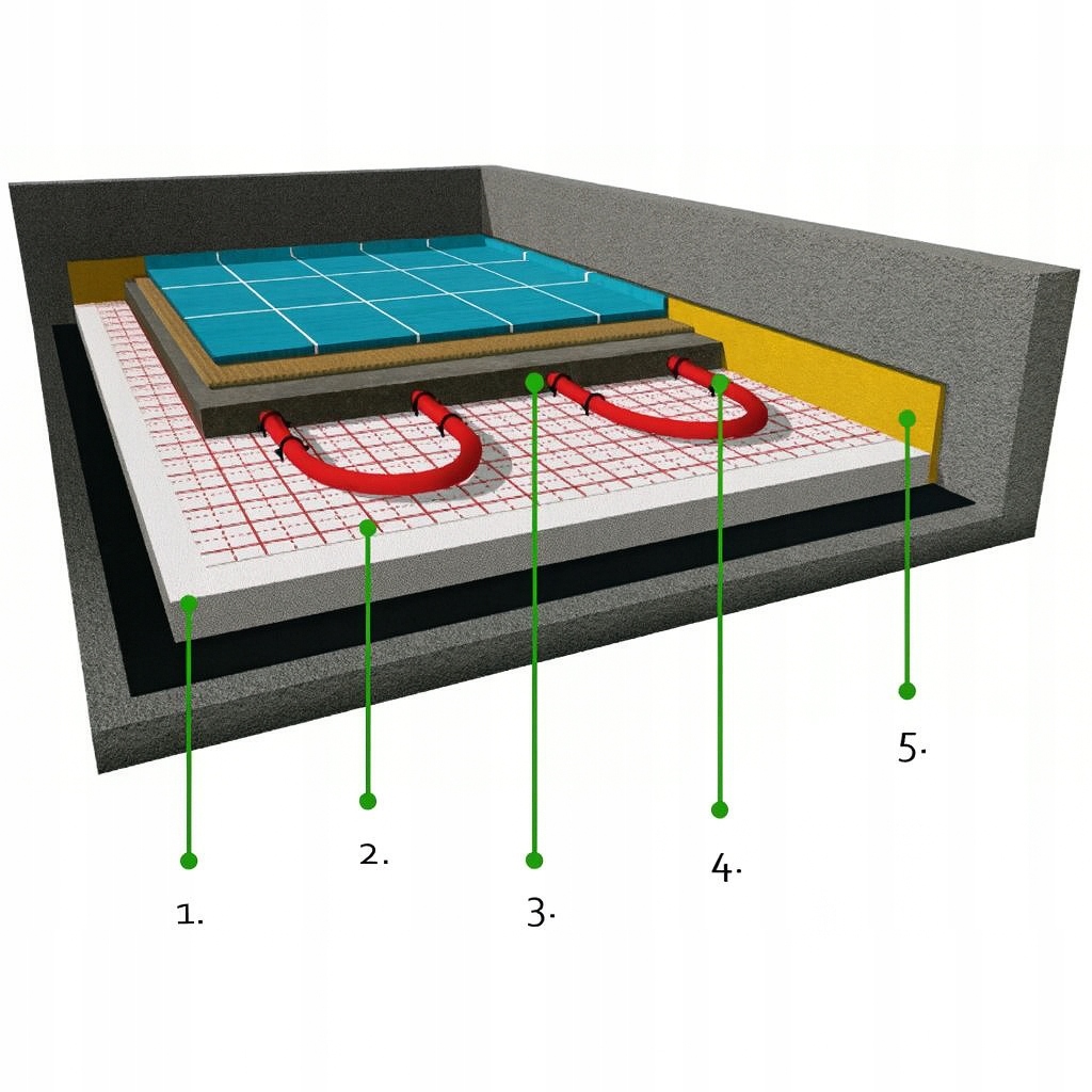 Фольга защищает пенополистирольные плиты от проникновения влаги, содержащейся в бетонной массе, а также самой бетонной массы при устройстве стяжки. Кроме того, он поддерживает плиты полистирола, чтобы правильно закрепить монтажные зажимы на трубах теплого пола.