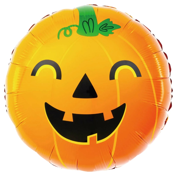 - Круглый оранжевый шар из фольги с изображением широко улыбающейся тыквы.