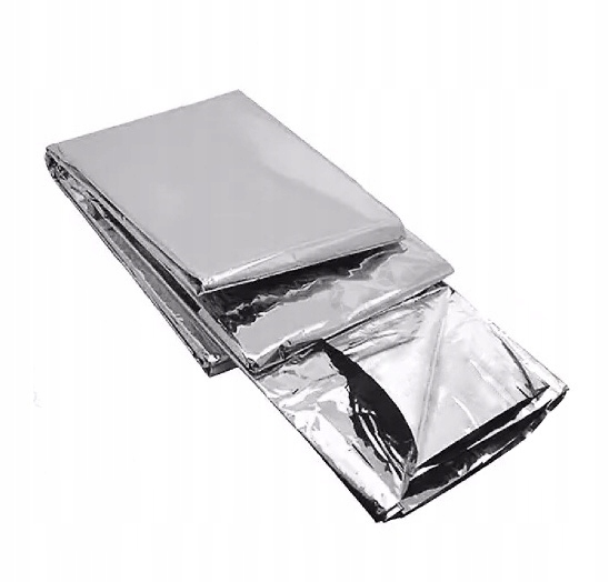 Спасательное одеяло, состоящее из двух плотно соединенных между собой слоев. Изделие представляет собой тонкую, прочную и водонепроницаемую металлизированную серебряную ПЭТ-фольгу толщиной 12 мкм.
