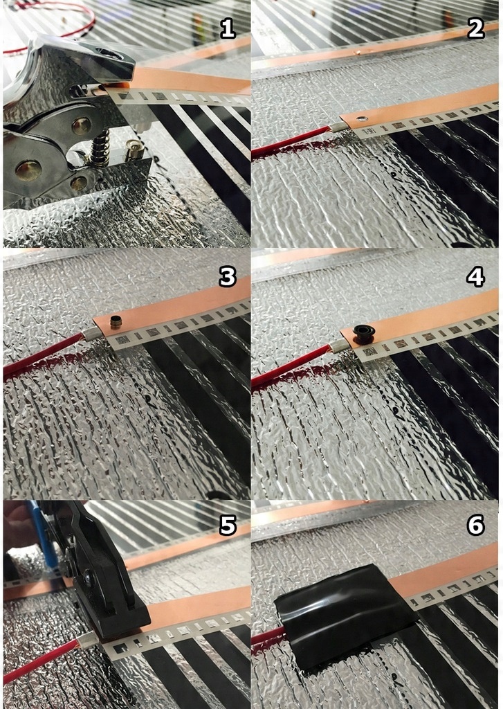 Схема электромонтажа нагревательной фольги ТЕРМОФОЛ