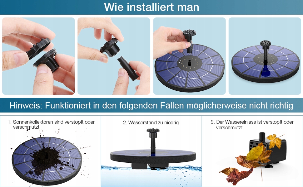 Продукт обладает автоматической защитой от исключения и автоматически останавливается, когда он покидает воду. Дольше жизнь. Наш водяной насос подключен к ящику фильтра, которая может лучше блокировать грязь, пыль и листья, продлевая его жизнь. Пожалуйста, проверяйте и чистите регулярно, чтобы обеспечить правильное функционирование.