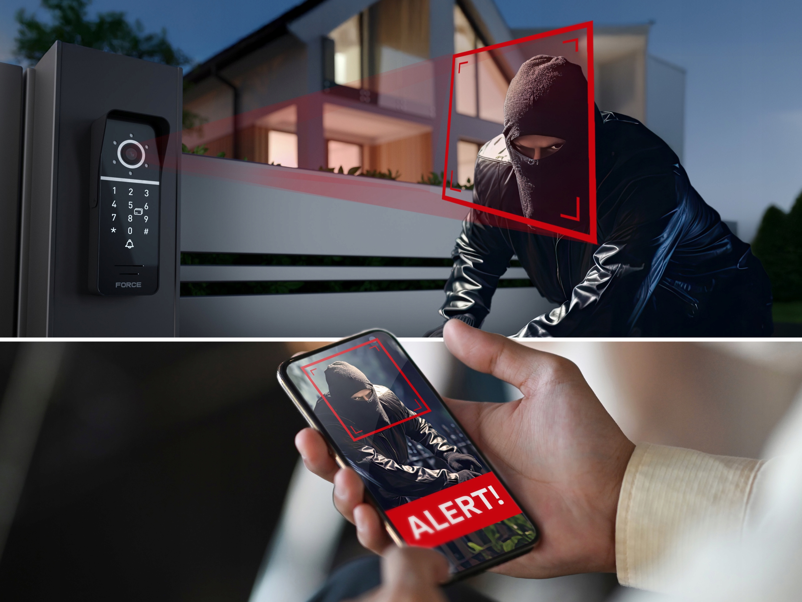 - Воротная станция FORCE MYWAY имеет встроенный алгоритм обнаружения движения, который можно активировать – при обнаружении движущихся объектов возле ворот и/или ворот камера может отправить незаметное тревожное уведомление на монитор.