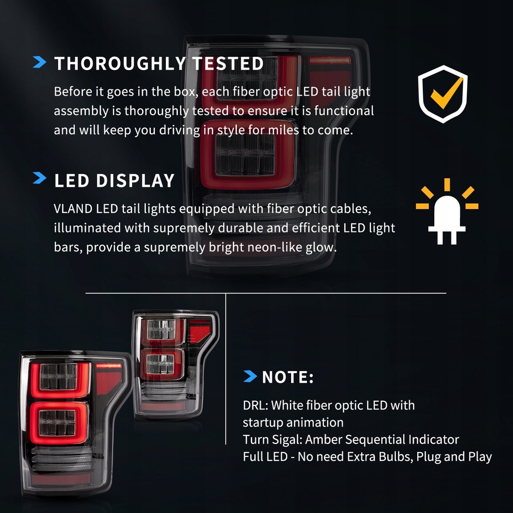 FORD F150 F-150 2015-2020 LAMPA LAMPY TYŁ LED VLAND L+R ŻÓŁTY KIERUNKOWSKAZ