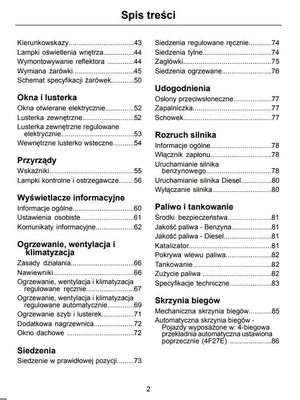 Руководство для владельца Ford содержит все версии оборудования и полезную информацию о том, как эффективно и безопасно использовать автомобиль, например. - индикаторы, индикаторы открытия и закрытия - освещение и обзорность, сиденья, отсеки для хранения вещей, отопление, вентиляция, кондиционирование - вождение, советы по эксплуатации, обслуживание автомобиля - уровни жидкостей, проверка и доливка, аварийные операции, замена колес, предохранители, замена лампочек - технические данные... и многое другое, дающее путешественникам ощущение безопасности и комфорта. Польское законодательство обязывает продавца приложить к автомобилю руководство по эксплуатации на польском языке. Руководство пользователя автомобиля новое, на польском языке.