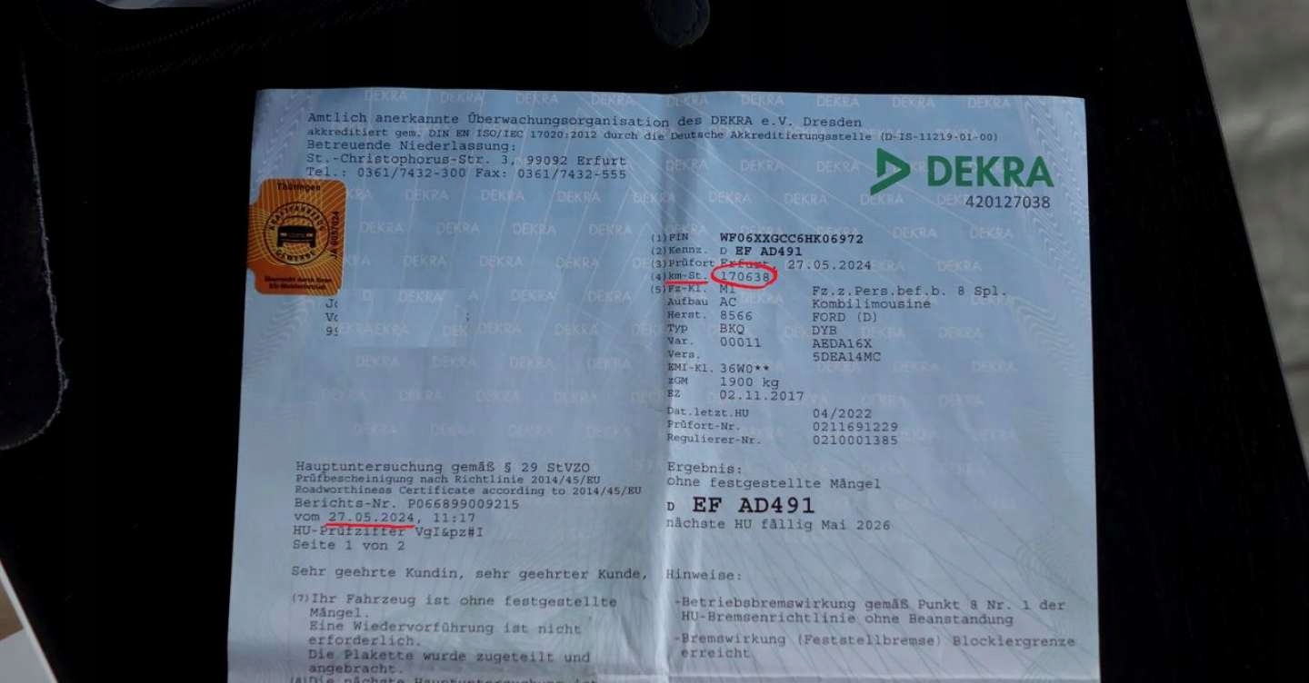 - Последний технический обзор (TUV) был сделан в мае 2024 года, с пробегом 170 тысяч. (Действительно до марта 2026 г.)