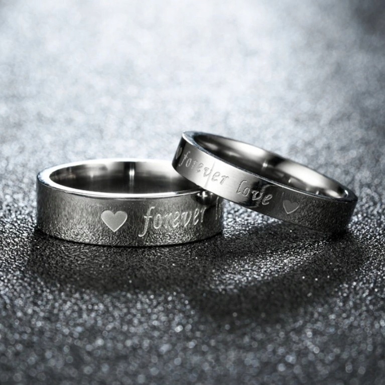 - Обручальное кольцо с гравировкой Forever love и двумя сердечками