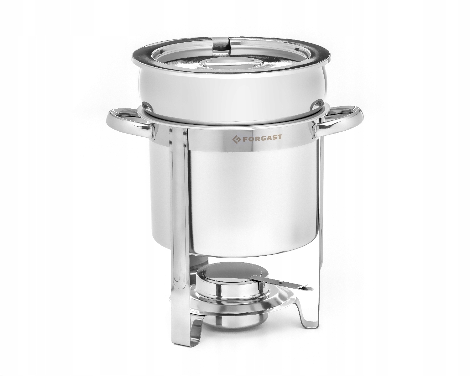 Подогреватель круглый для супа емкостью 11 литров производства Forgast. Изготовлен из нержавеющей стали толщиной 0,6 мм (крышка из стали 0,9 мм). Каркас из нержавеющей стали толщиной 2 мм. Отопитель с подогревом топлива. В комплект оборудования входит контейнер для канистры с топливом.