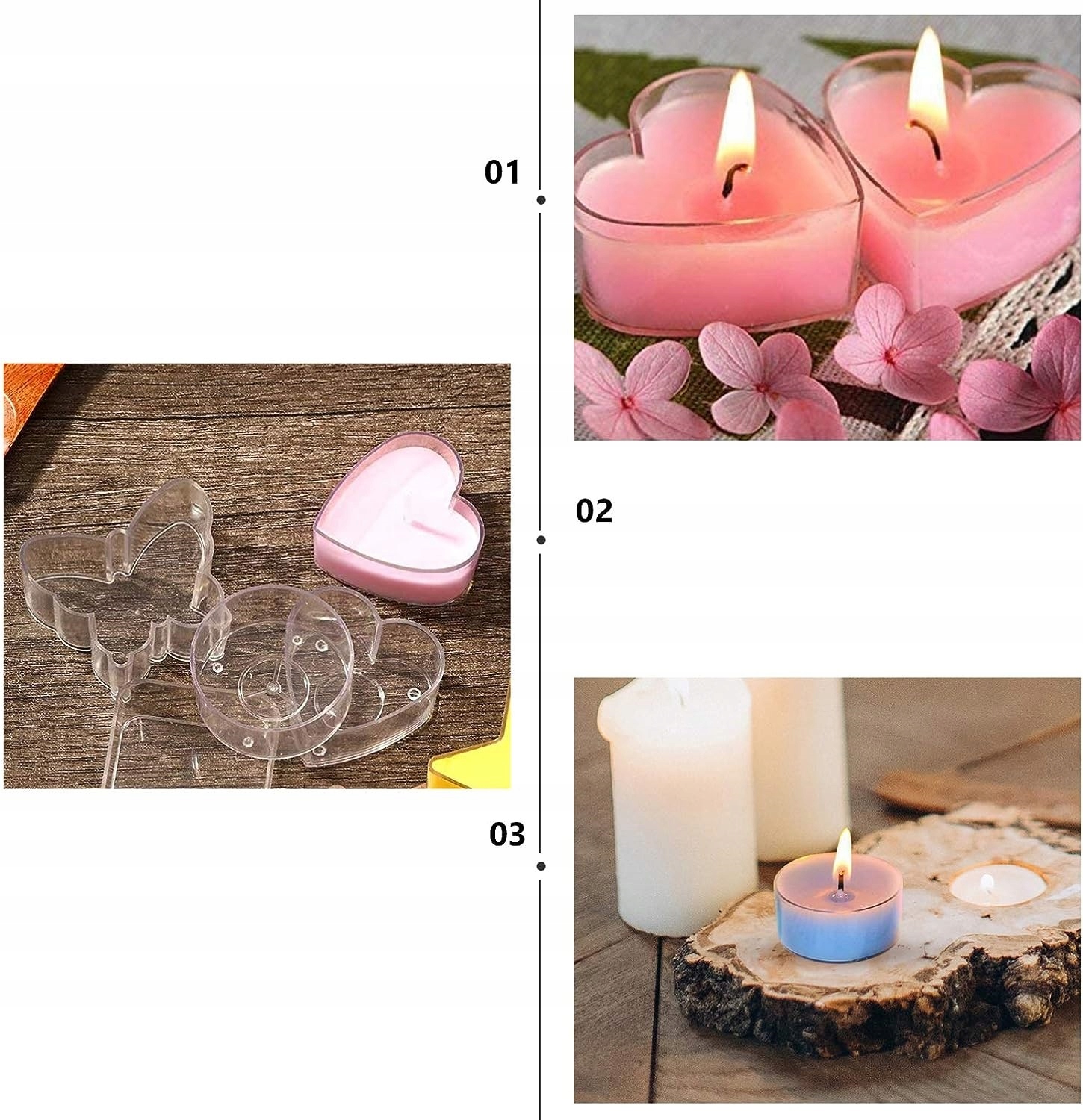- Милые сердечки и квадратные формы, идеальны для изготовления свечей на свадьбу, исповедь, ужин при свечах в День святого Валентина.