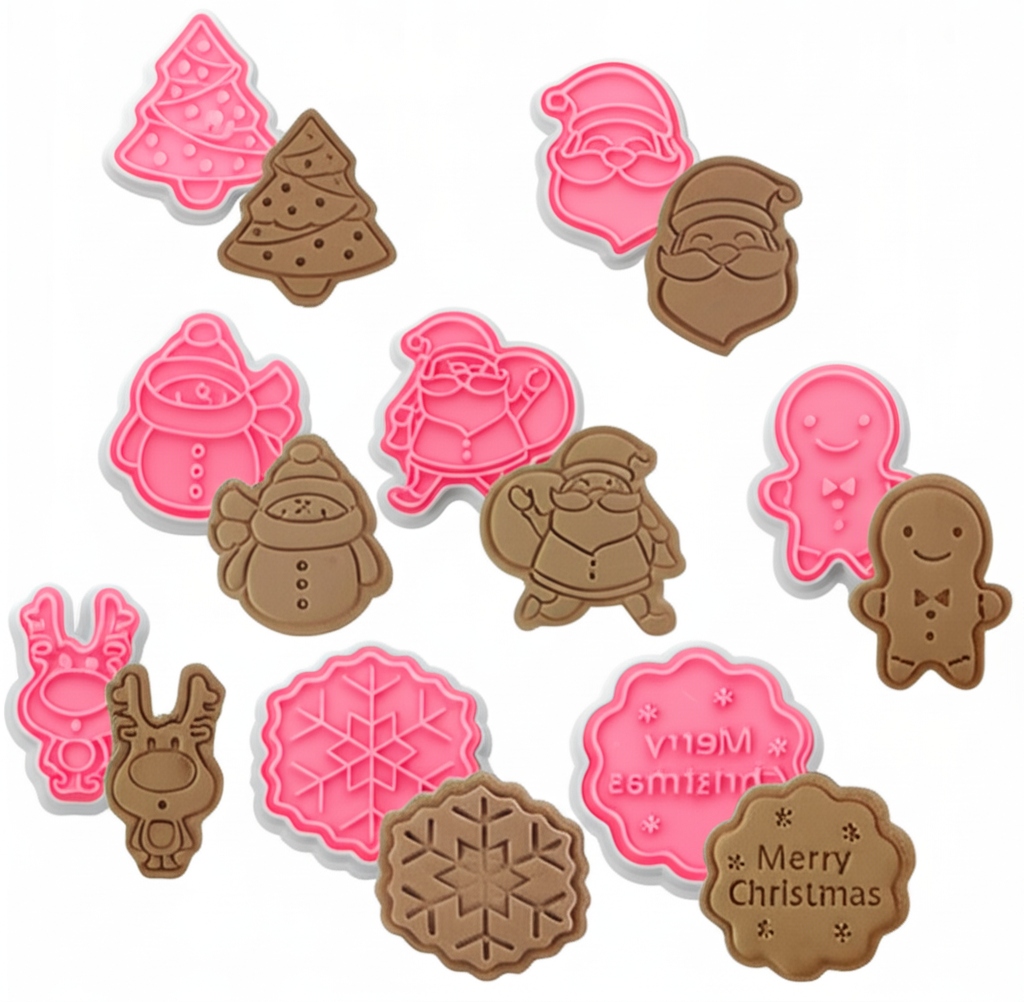 В наборе 8 шт формочек разных размеров с рождественским мотивом. Они изготовлены из очень прочного материала. Идеальные формы для печенья и сахарной пасты. Подходит для контакта с пищевыми продуктами.
