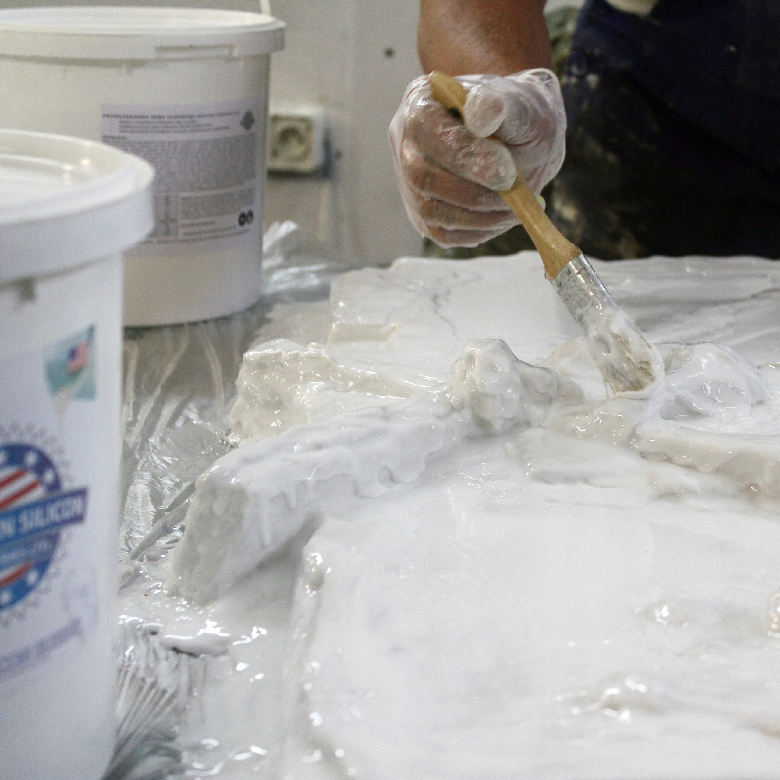 - Силикон наносится кистью слой за слоем непосредственно на поверхность модели.