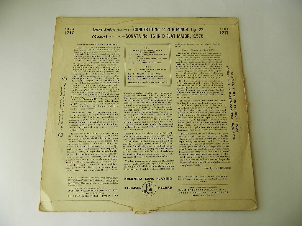 ИСПОЛНИТЕЛЬ: Сен-Санс - Эмиль Гилельс / Моцарт - Эмиль Гилельс и Оркестр Общества концертов консерватории под управлением Андре Клютенса