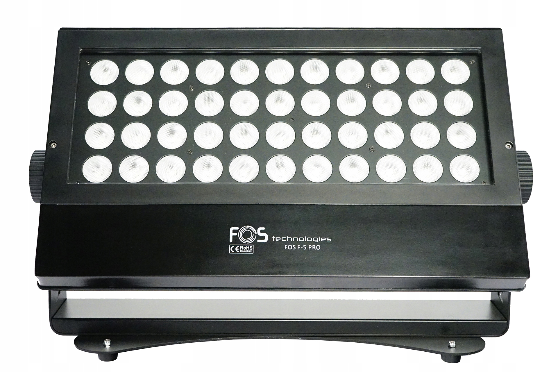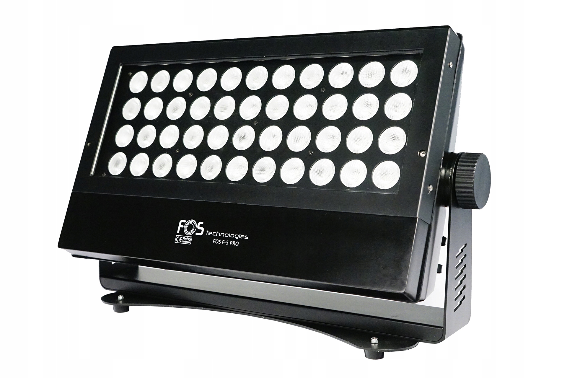 Удивительный прожектор IP 65 44 x RGBW 4в1 10Вт светодиод, 12 000 лм, линза 35°, панорамирование/наклон: 0°/120°, каналы DMX 1, 3, 4, 5, 10, 14 15 на выбор, литье алюминий, напольная подставка, подвесная, 9 кг.