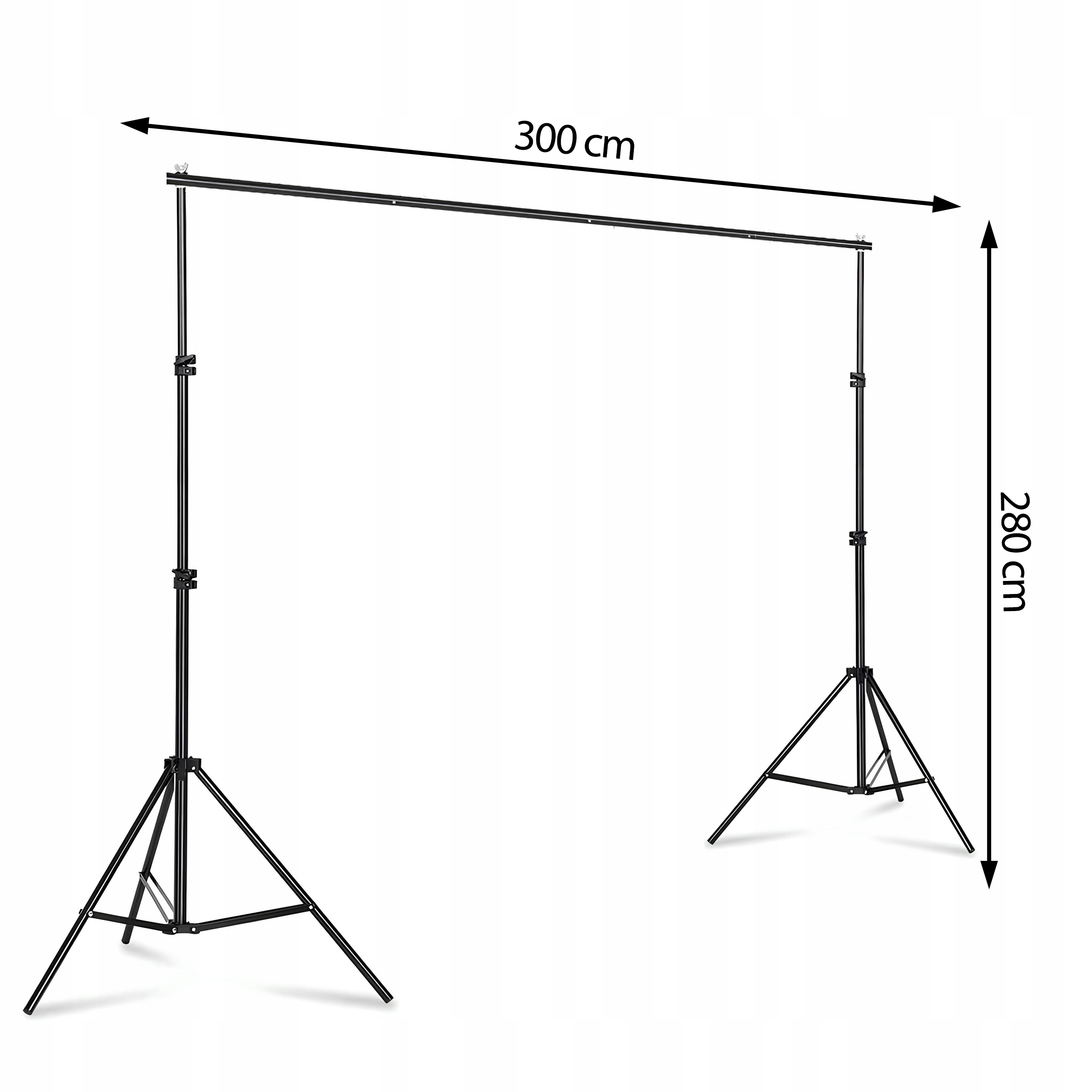 - 2x Телескопический штатив - Регулируемая высота высота до 2,8 м позволяет адаптировать его к разным размерам фона. Идеально подходит как для тканей, так и для бумажных или виниловых фотографических фонов.
